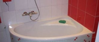 Helpful advice! Acrylic structures look especially beautiful and stylish in large rooms, but owners of small bathrooms should not be upset. You can give an original look to an old cast-iron bathtub by decorating it with red tiles or mosaics.
