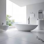 When decorating the walls of a room, be sure to leave a large area while preserving the brickwork or concrete partition. If necessary, such a coating is created artificially so that the loft-style bath retains its characteristic design features. In most cases, one of the walls of the room is decorated in a different way, which distinguishes it from the other three. For example, three walls may be rendered and painted, but one wall will have brickwork or bare concrete surface.