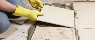 - Before starting to create a tiled floor, prepare the surface for its installation. Its horizontalness is checked with a level. Minimal defects can later be eliminated using tile adhesive. Significant cracks and deep potholes must be repaired either with a cement screed or by applying a self-leveling mortar.