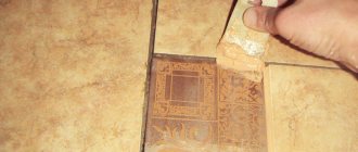To prevent the tiles from floating to the sides, plastic crosses are inserted between them, allowing you to accurately control the size of the seams between the tiles. The latter, after completion of the cladding, are subject to mandatory grouting. Otherwise, water will get under the ceramic through them, which will sooner or later lead to its falling off.