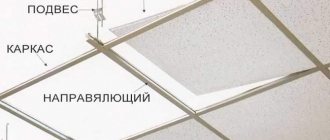 - A special L or U shaped profile is mounted around the perimeter of the room, on which plastic slatted panels are laid. A universal support rail is used as a supporting element, equipped with grips for attaching slats. The tire is installed on adjustable hangers to the required height.