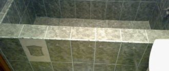 After installing the bathtub close to the wall and checking the horizontal level, a ceramic border is laid on its edges. A row of tiles is laid on the vertical shelf of the border, continuing the laying up to the ceiling. There is no doubt about the reliability of the ceramic border - its long service life has been tested by experience.