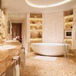Такие модели уместно смотрятся в просторных помещениях и могут быть установлены в любом месте комнаты, так как в большинстве случаев, будут «изюминкой» интерьера санузла.