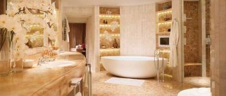 Центральный объект, вокруг которого строится весь интерьер — сама ванна. Обтекаемая каплевидная форма, стеклянные бортики или чугунные витиеватые ножки сделают ваш интерьер особенным.