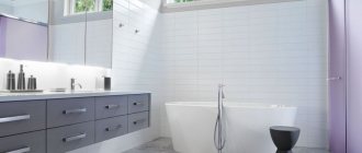 Площадь московской двушки в панельном доме – 49,6 кв. м, в ней проживает семья с двумя детьми. Во время ремонта ванную решили не совмещать с туалетом: для семьи из четырёх человек это решение было осознанным. Несмотря на маленький размер помещения, владельцы, выбирая между душевой и ванной, предпочли оставить второй вариант. Пространство расширено только визуально: стены выложены белой прямоугольной плиткой, отчего интерьер кажется светлее. Ненавязчивый акцент в виде орнамента сделан лишь в зоне душевой лейки.