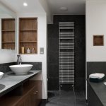 | Соблюдайте законы эргономики | Предметы должны быть многофункциональными и вместительными. Выбирают шкафчики встроенного типа, раковина, душевая прячутся в тумбы. |